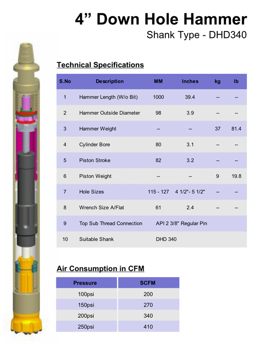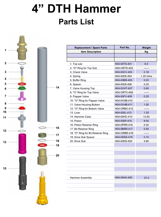 CENERG DTH Hammer Specs   CENERG DTH Hammer Parts List
